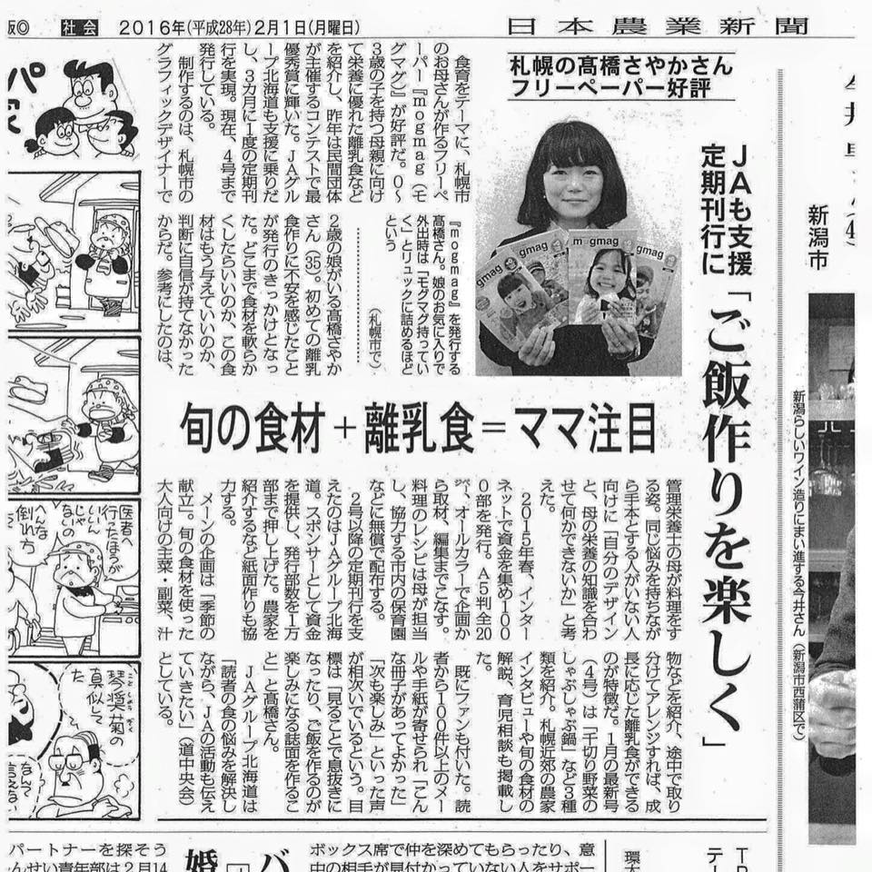 ・2016年4月:読売新聞 北海道版