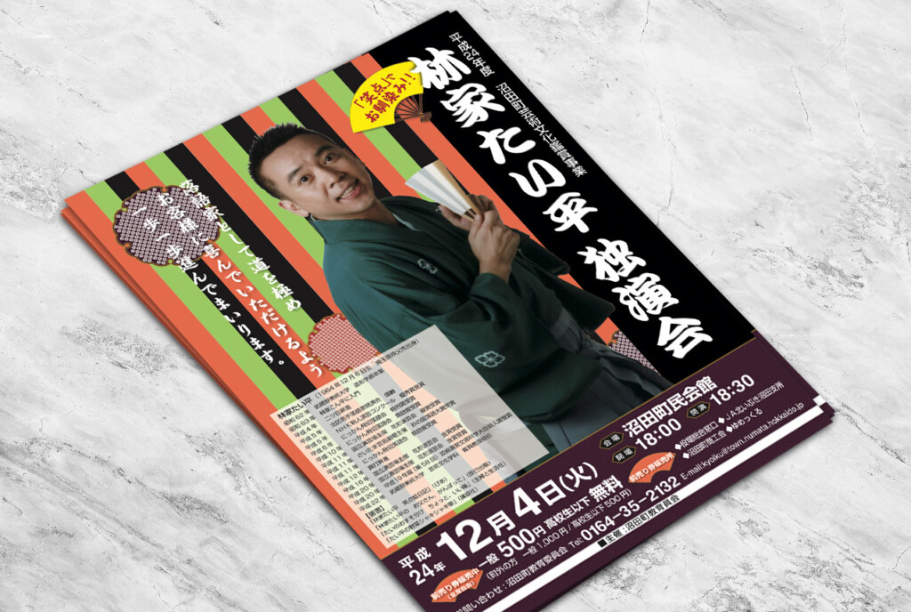 想いをこめて手がけたお仕事 林家たい平さん 独演会 フライヤー制作 OTHERS 落語家の林家たい平さん独演会のフライヤー制作を担当させていただきました。 BASIC INFORMATION 林家たい平さん 独演会 フライヤー制作 チラシ・フライヤー プロジェクトマネージメント:サウンド企画様